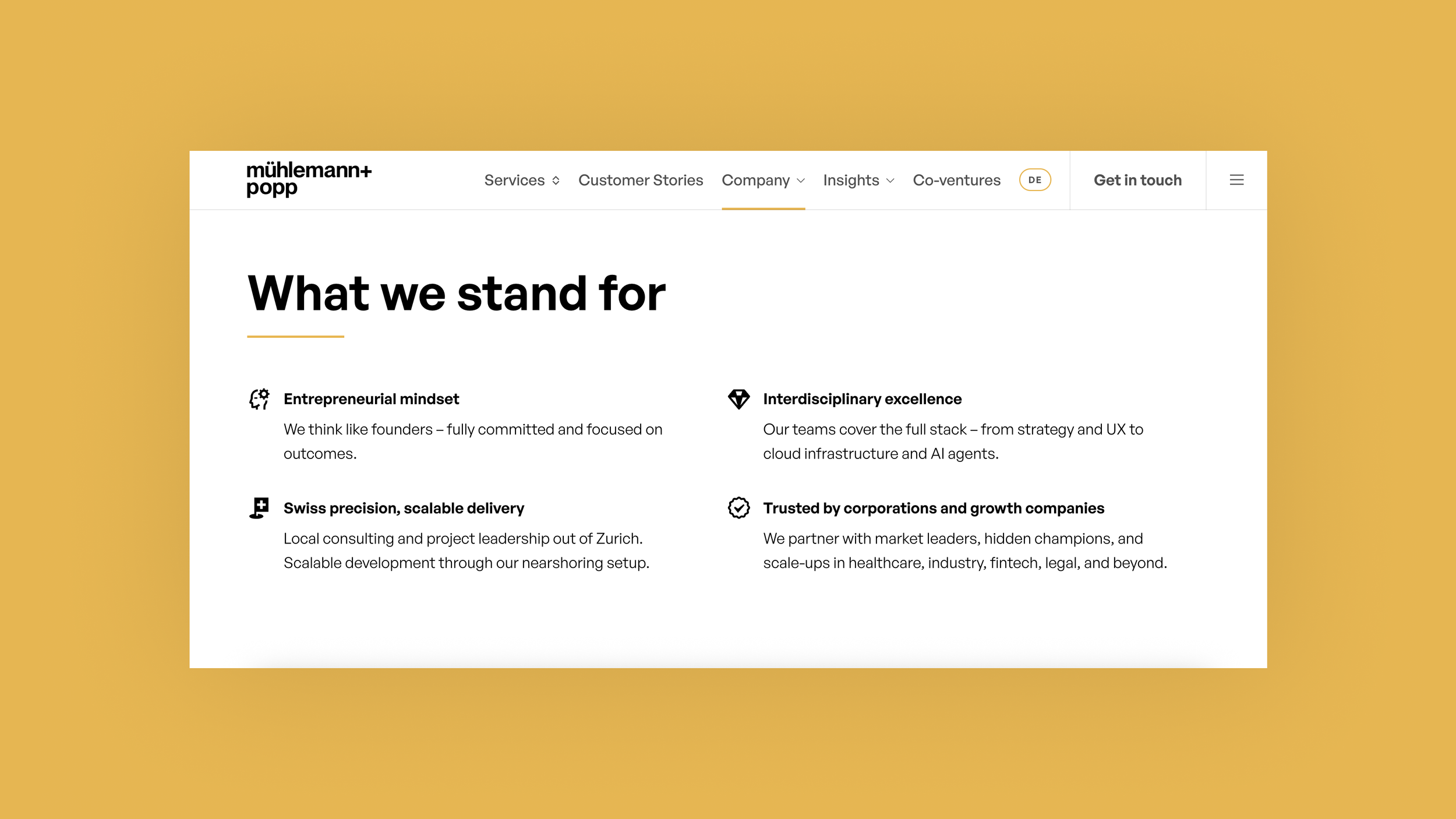 m+p is a partner for digital strategy, software, and AI. Founded in 2010 and headquartered in Zurich. They collaborate with ambitious teams to turn ideas into impactful products and platforms.